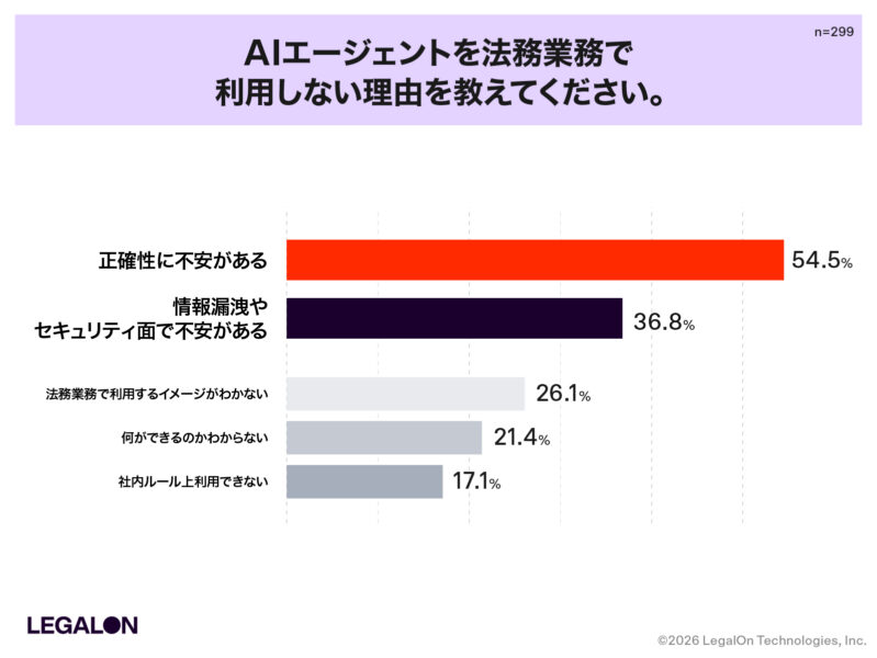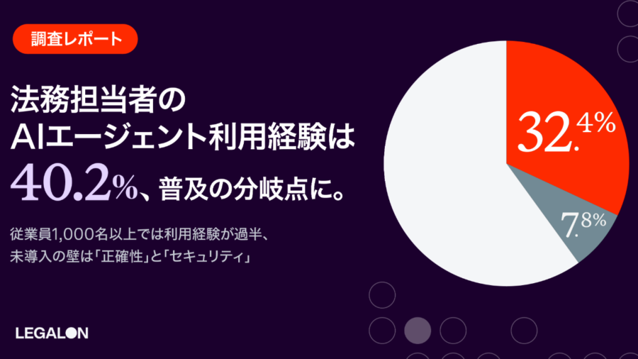 法務担当者のAIエージェント利用経験は40.2%、普及の分岐点に~従業員1,000名以上では利用経験が過半、未導入の壁は「正確性」と「セキュリティ」~