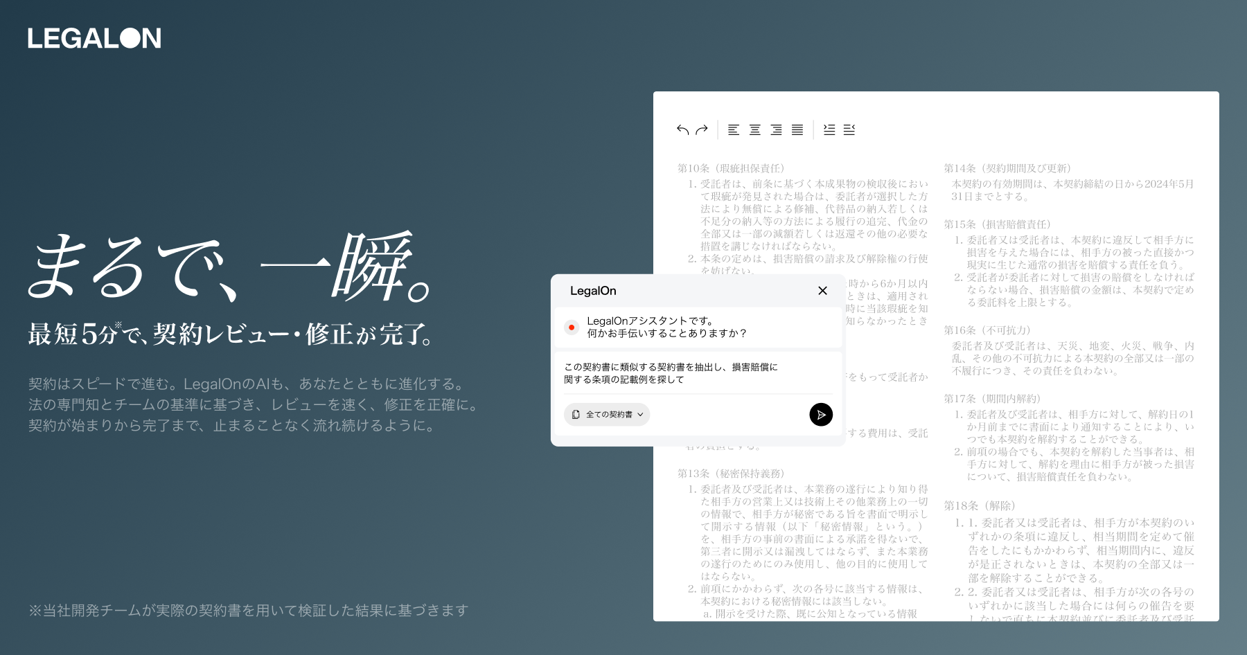 LegalOn Technologies社との連携は、両社の高度な技術力と共通のビジョンに基づき、グローバル市場における法務コミュニケーションの未来を共に切り拓く重要な取り組みです。